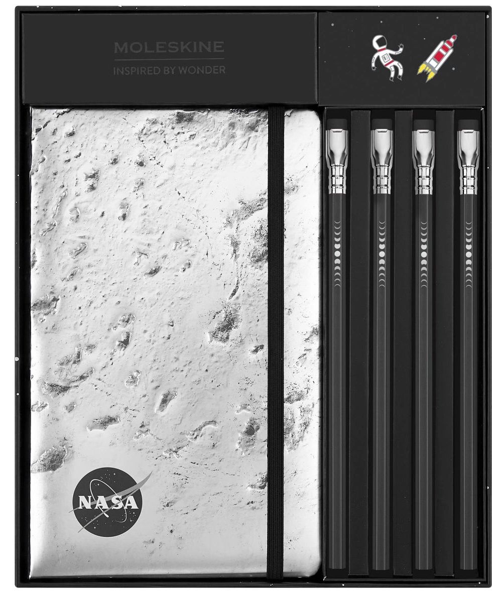 Набор Moleskine NASA-inspired Книжка Large линейка серебристый+4 карандаша+2 шильда SKBNDLPP7063S3