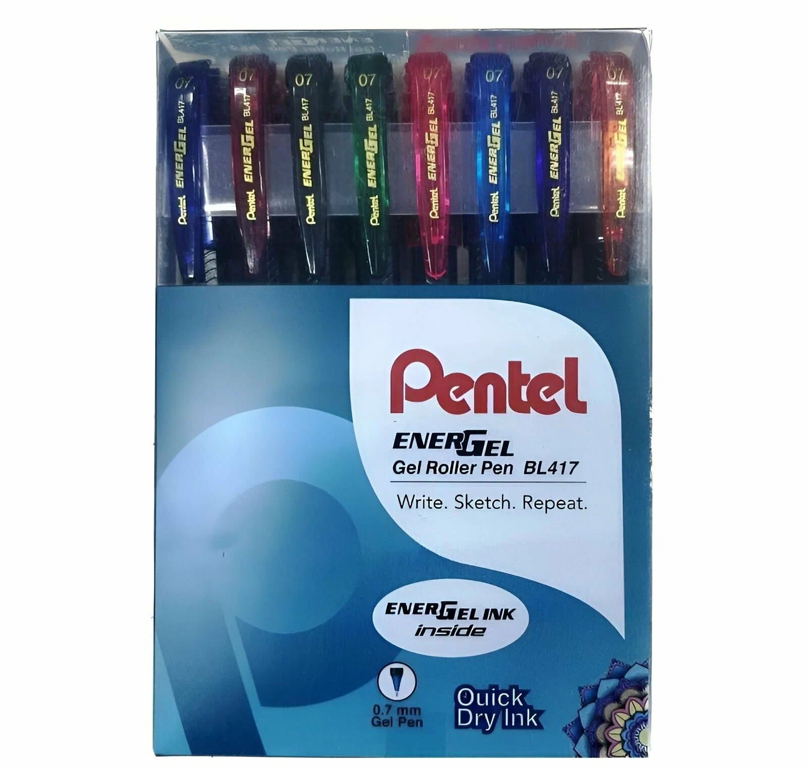 Ручка гелевая Pentel 8цв. BL417 ENERGEL 0.7мм ассорти