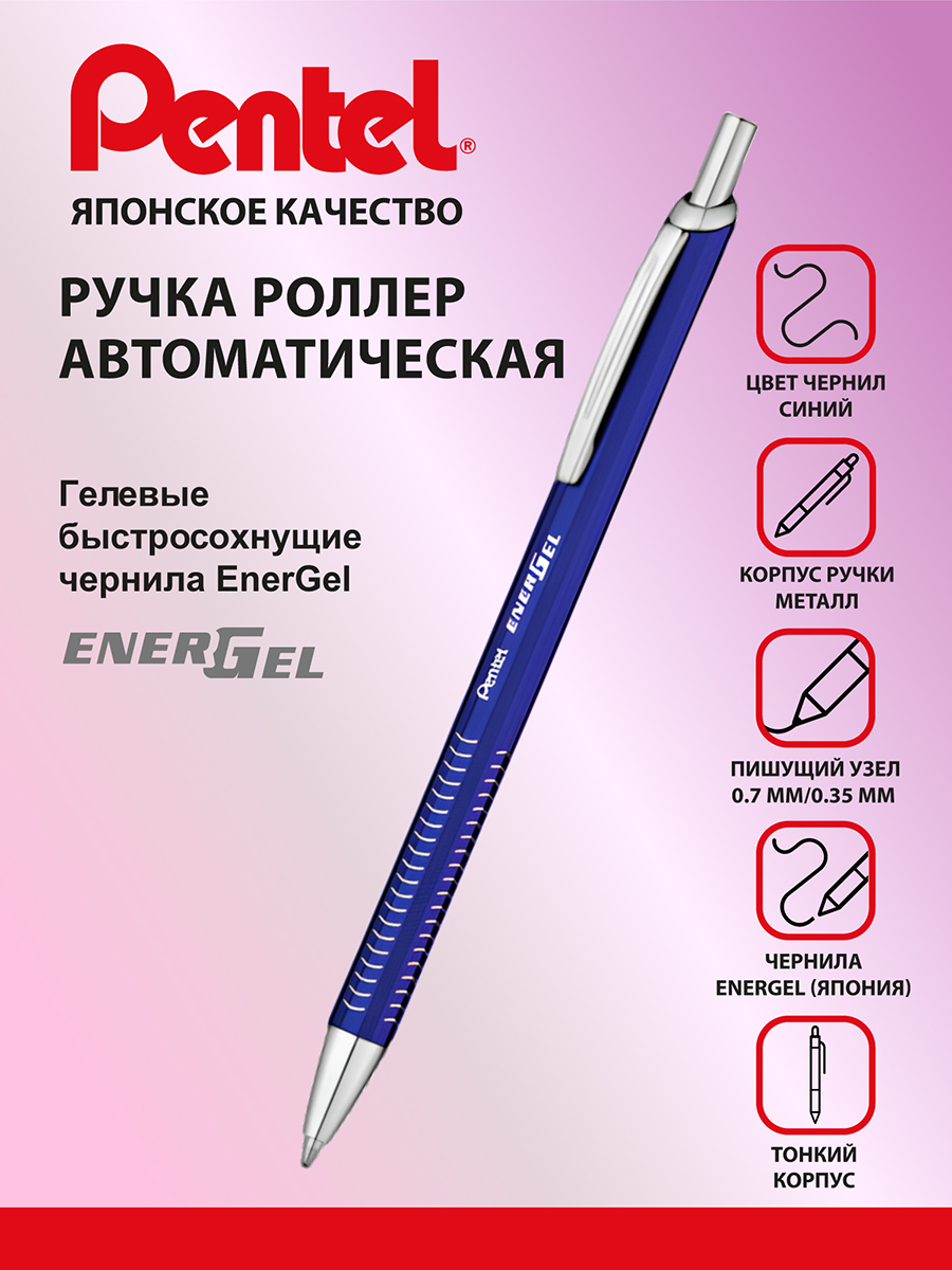 Ручка гелевая Pentel BL447CC GB ENERGEL Metal 0.7мм синий корпус