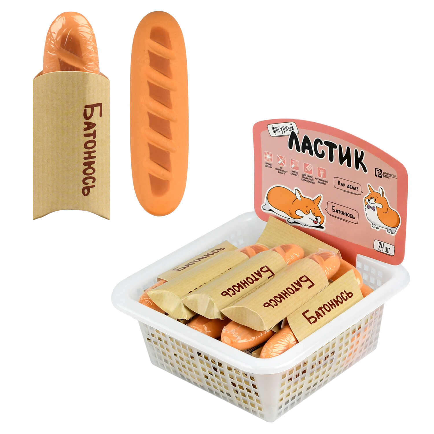 Ластик Феникс+ КОРГИ батон термопластичная резина, 25х12х83мм 73043