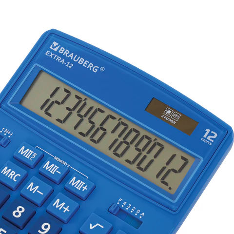 Калькулятор BRAUBERG EXTRA-12-BU 12 разрядов, двойное питание, СИНИЙ, 250482