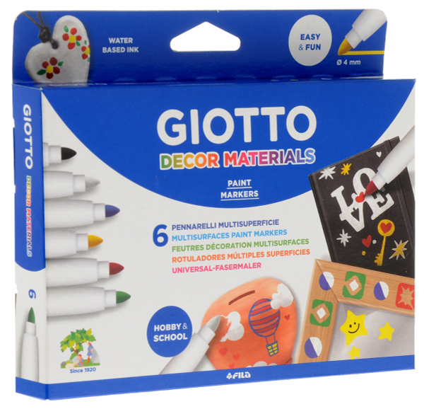 Фломастеры 6цв.GIOTTO Materials для декора любой поверхности 453300