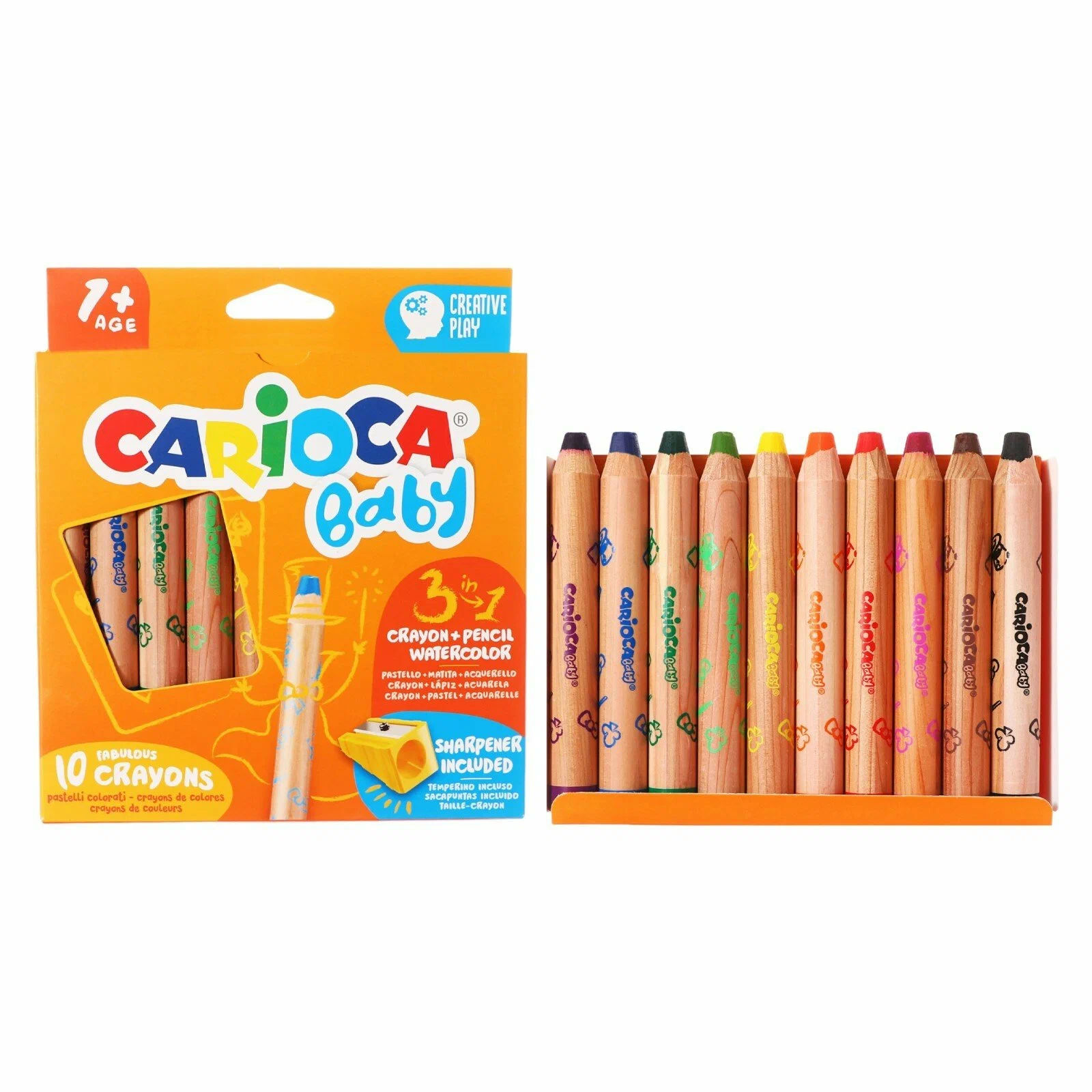 Мелки восковые 10цв.Carioca Baby 3IN1 42818