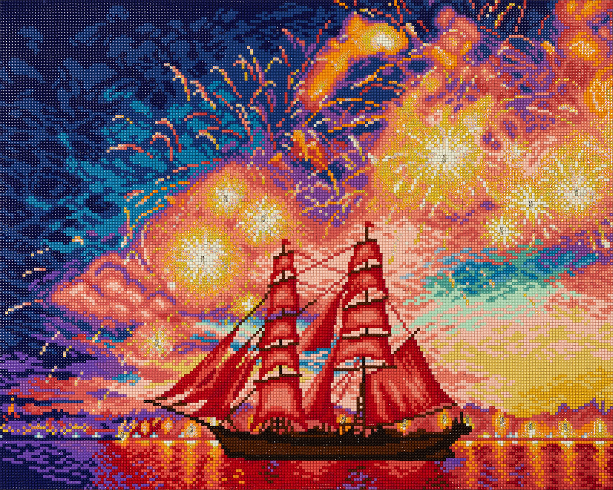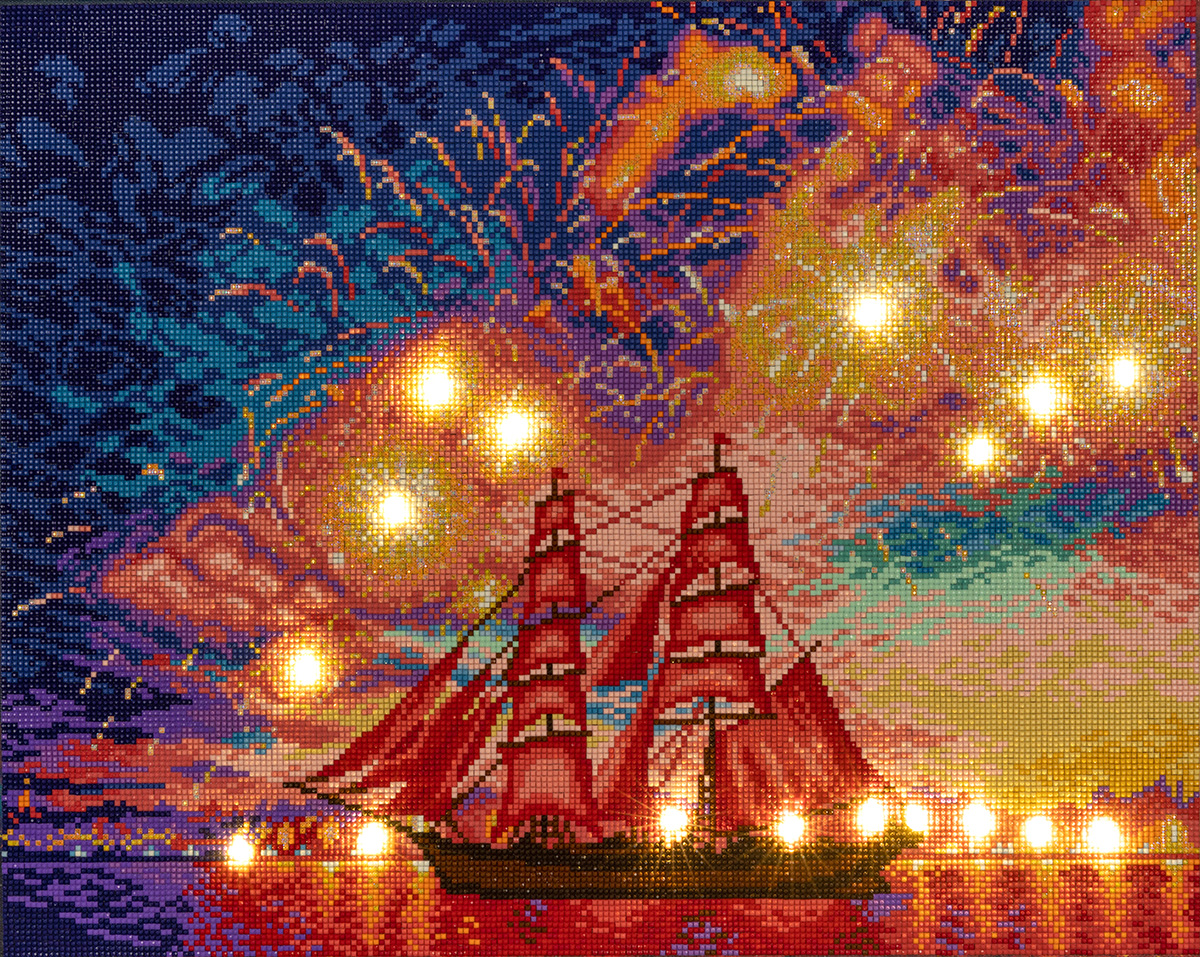 Набор для творч.ФРЕЯ Алмазная мозаика «Алые паруса»со светодиодами 50*40см ALDD-238