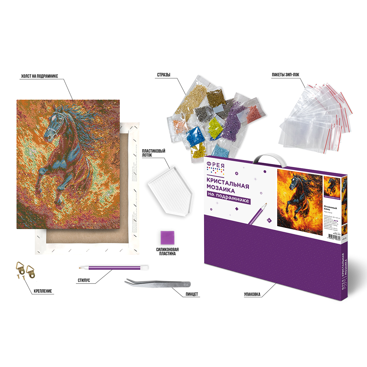Набор для творч.ФРЕЯ Алмазная мозаика «Огненный конь» на подрамнике 40*50см ALPD-312